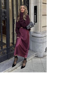 Фиалковый или вишневый может быть использован в качестве отдельного элемента одежды (например, пальто, свитер, юбка) или в аксессуарах (сумка, обувь, шарф).