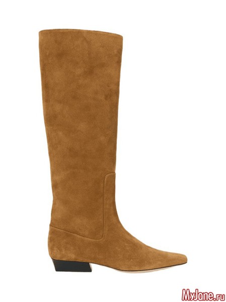 Зима 2025-2026 делает ставку на изящные линии: сапоги с узким голенищем, модели с острым носом, замшевые варианты в оттенках шоколада и карамели. Такой силуэт визуально вытягивает ногу и легко сочетается с юбками-миди и пальто.