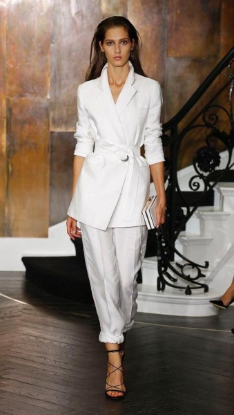 Для офисного дресс-кода модельеры предлагают классические костюмы пастельных оттенков, костюмы с удлиненными жилетами, комбинезоны из атласной или шелковой ткани оливкового или карамельного тона с жилетом, юбку-плиссе в сочетании с классической белой хлопковой рубашкой, брюки 7/8 с кардиганом и свободным топом.