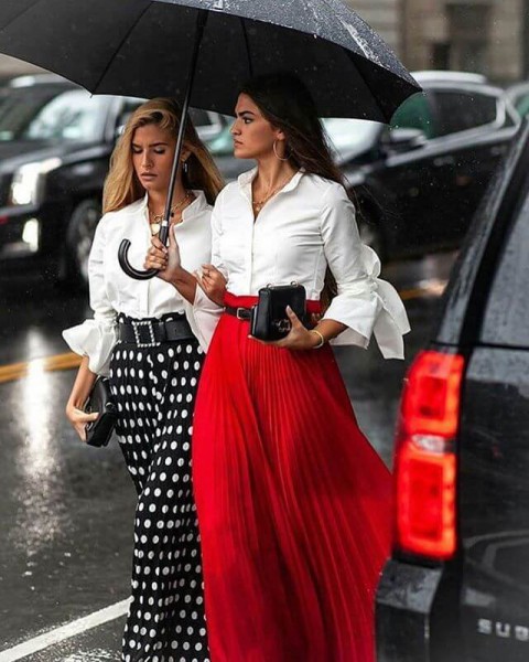 В тренде юбки плиссе с принтом или в ярком цвете. Верх к ним подбирают лаконичный, в сдержанном оттенке.